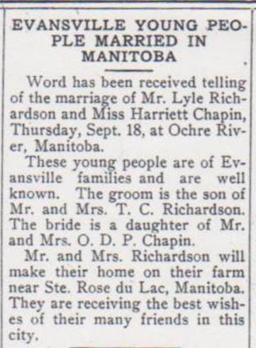 married Evansville native Lyell Richardson and joined her young husband on his
