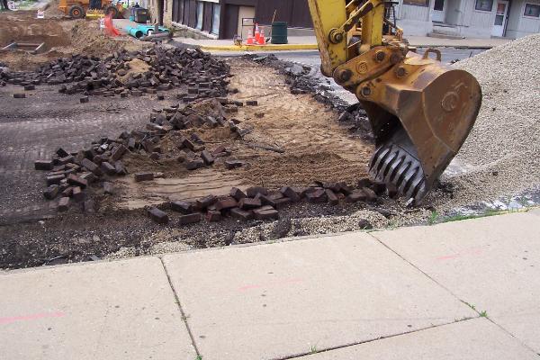 From First Street, east to Railroad Street, the asphalt, bricks, and cement surfaces were removed. New water and
