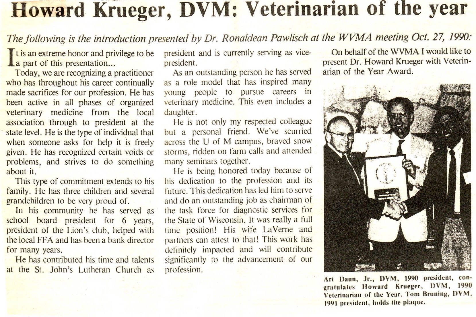 We also have two retired local veterinarians, Dr. Howard Krueger and Dr. Dave Rhoda. Gordie, I’m going to put