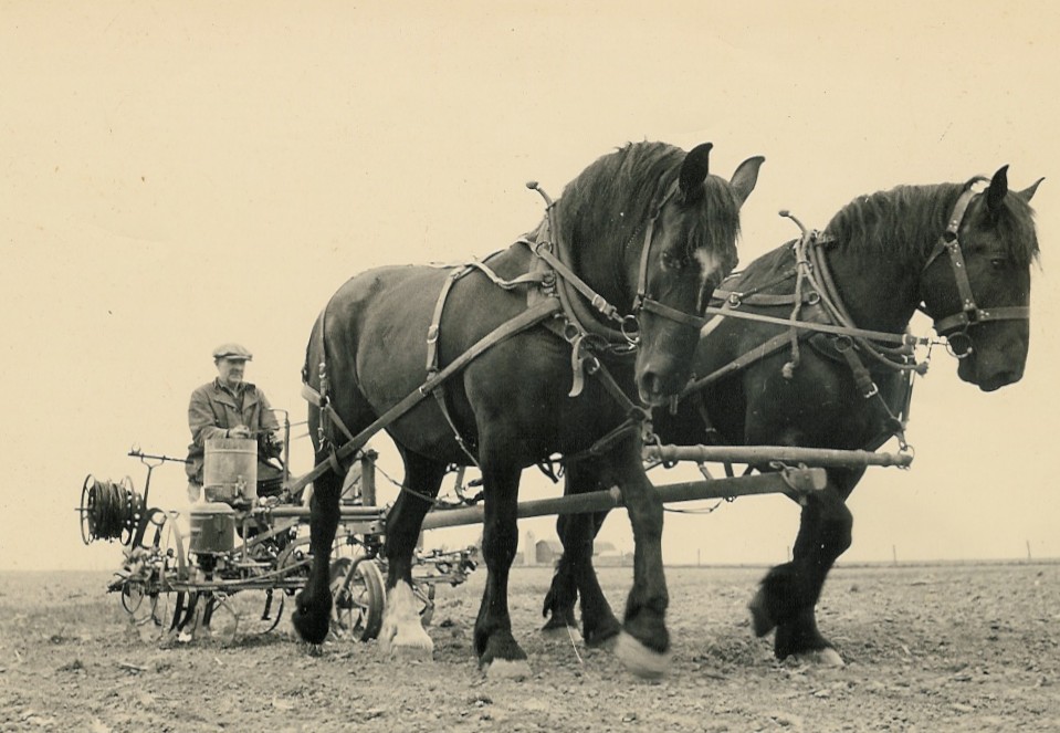 father-in-law. They picked corn by hand. They had two teams of horses. They started out even picking corn and